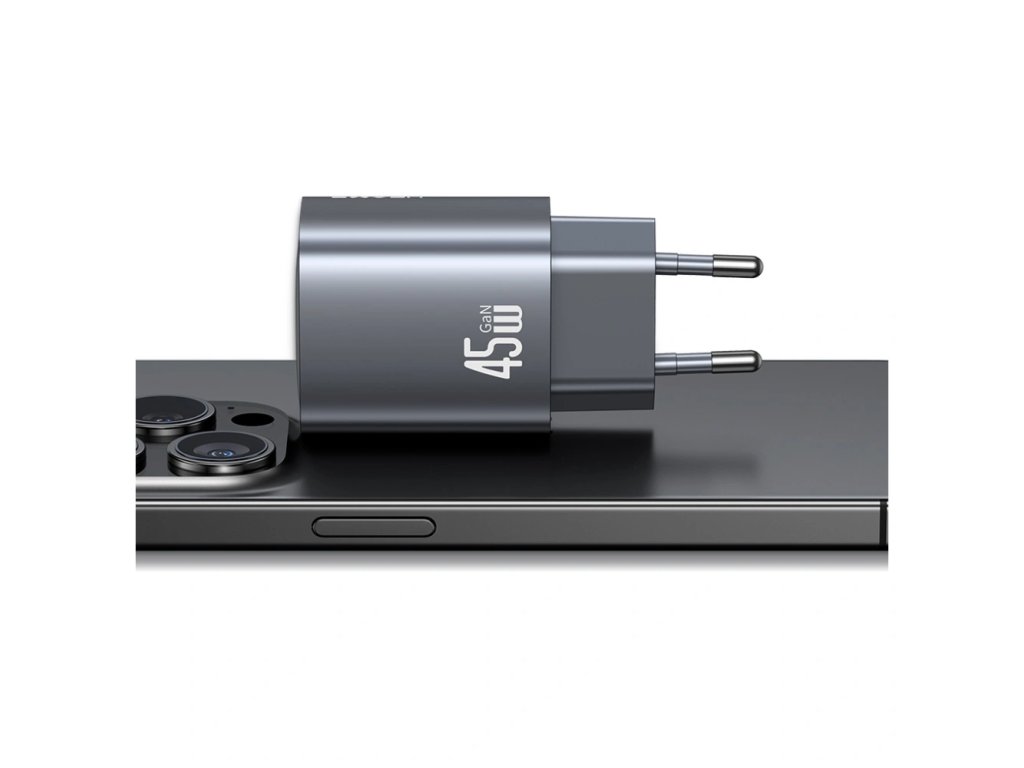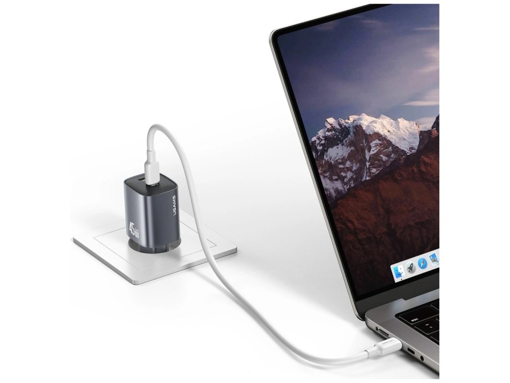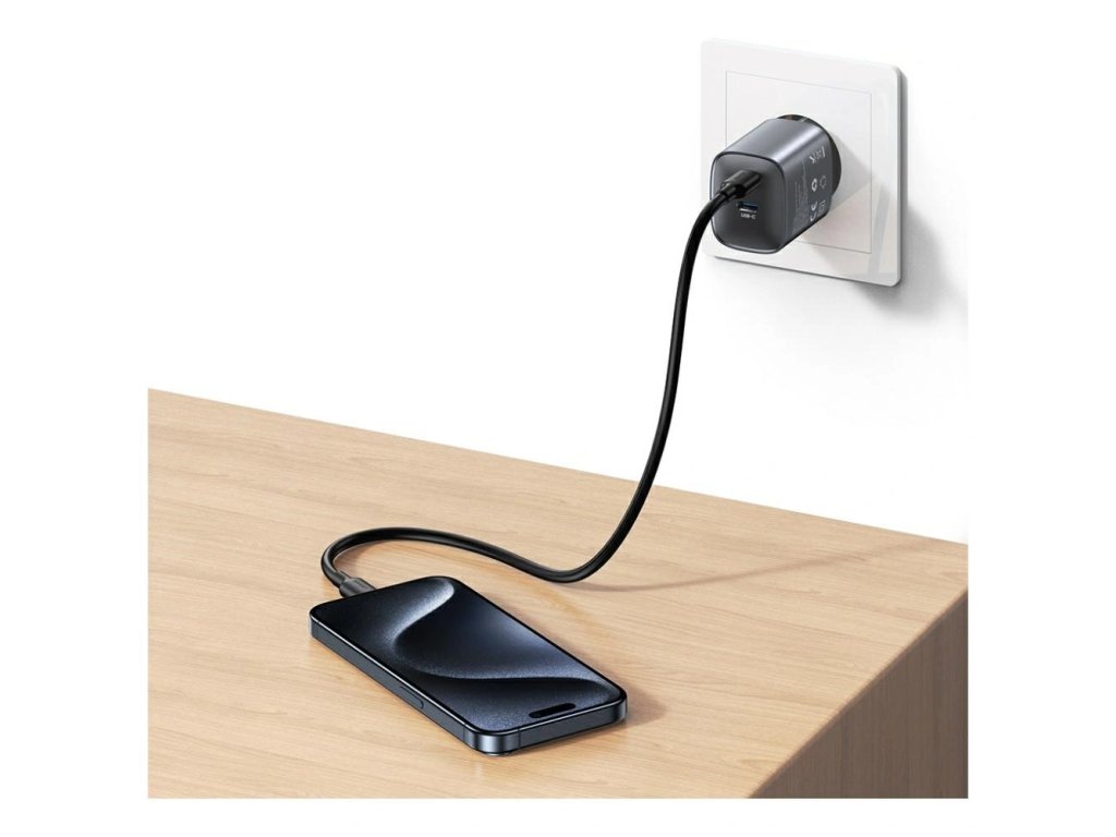 Technologie GaN (nitrid galia) umožnila vytvořit nabíječku s vysokým výkonem a zároveň kompaktními rozměry. Díky rozměrům pouhých 39 × 33,5 × 44,5 mm a hmotnosti přibližně 96 g se pohodlně vejde do kapsy nebo tašky. Pouzdro z plastu ABS+PC je odolné vůči nárazům a vysokým teplotám, což zajišťuje dlouhou životnost i při každodenním používání.