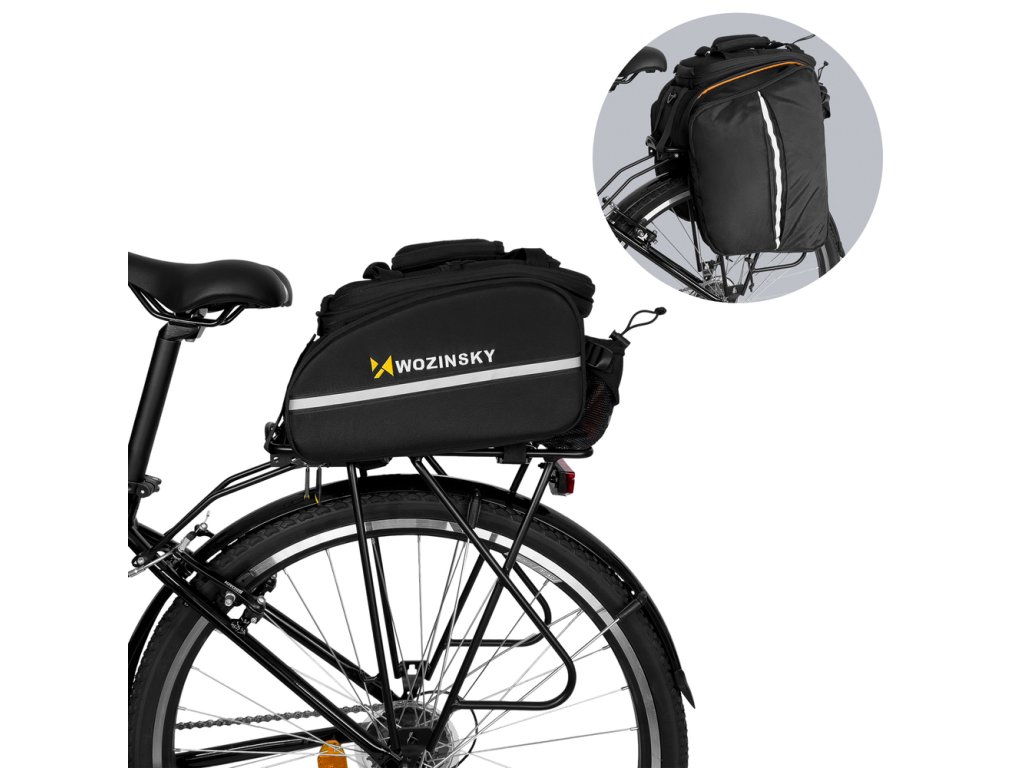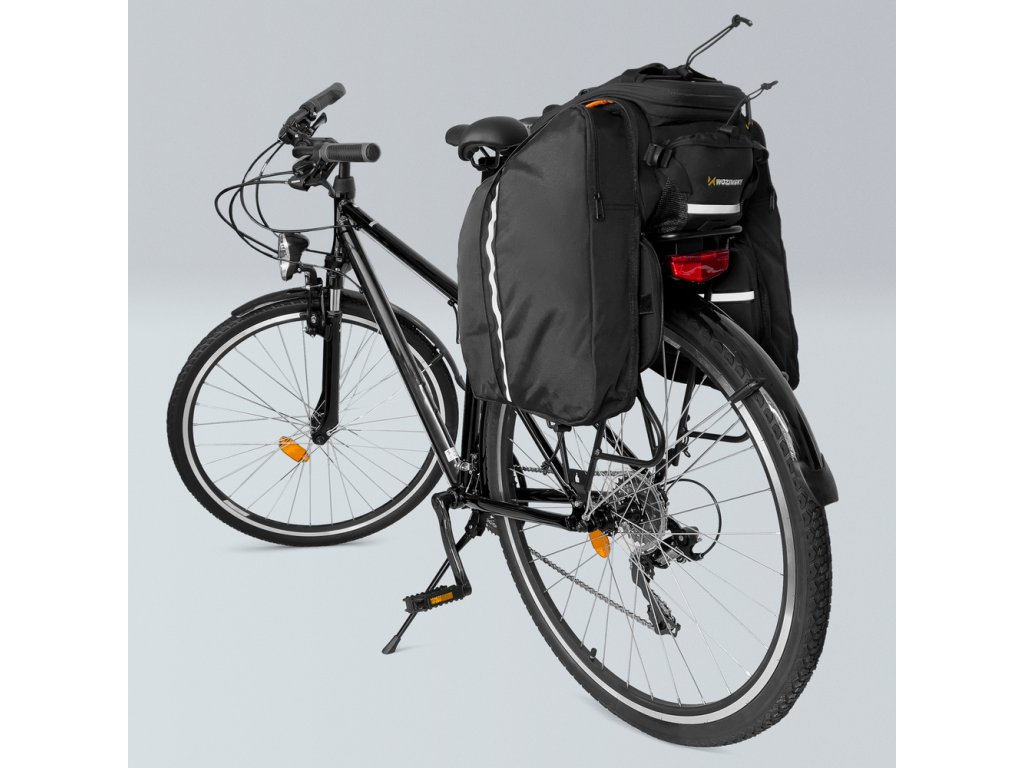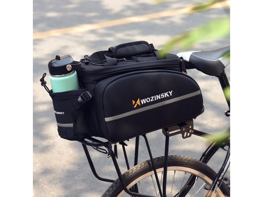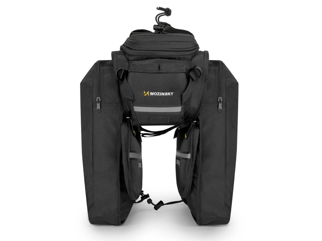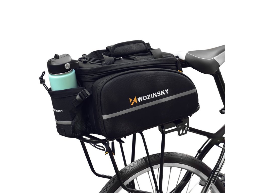 Cyklistická taška na nosič Wozinsky WBB19BK je jednou z nejfunkčnějších tašek v naší nabídce. Obsahuje mnoho praktických řešení: rozkládací, velké cyklistické brašny, pláštěnku, pohodlné vnitřní přepážky, ramenní popruh. Podle potřeby můžete rychle a pohodlně zvětšit její užitnou plochu. Je to skvělý doplněk pro kratší i delší výlety. Cyklistická taška na nosič je také snadná na montáž a demontáž, takže ji můžete rychle vzít s sebou.