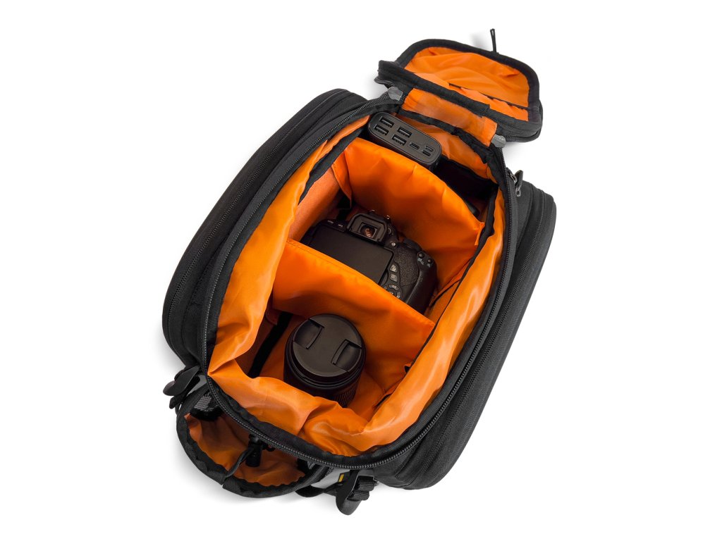 Velké cyklistické brašny byly navrženy tak, aby vám poskytly co nejvíce místa a dobrou organizaci. Na vnější i vnitřní straně tašky se nachází mnoho praktických kapes a přepážek, vzadu pak velká kapsa na láhev. Vejde se tam tedy oblečení, cyklistické doplňky, svačiny a dokonce i věci potřebné na kempování.