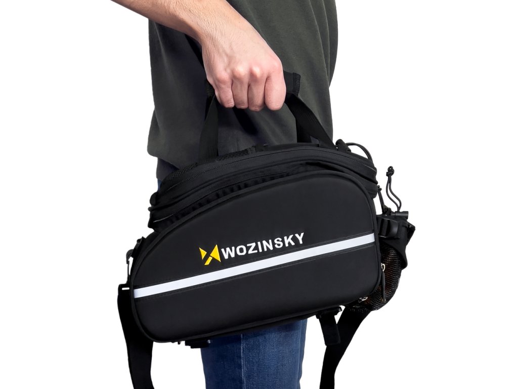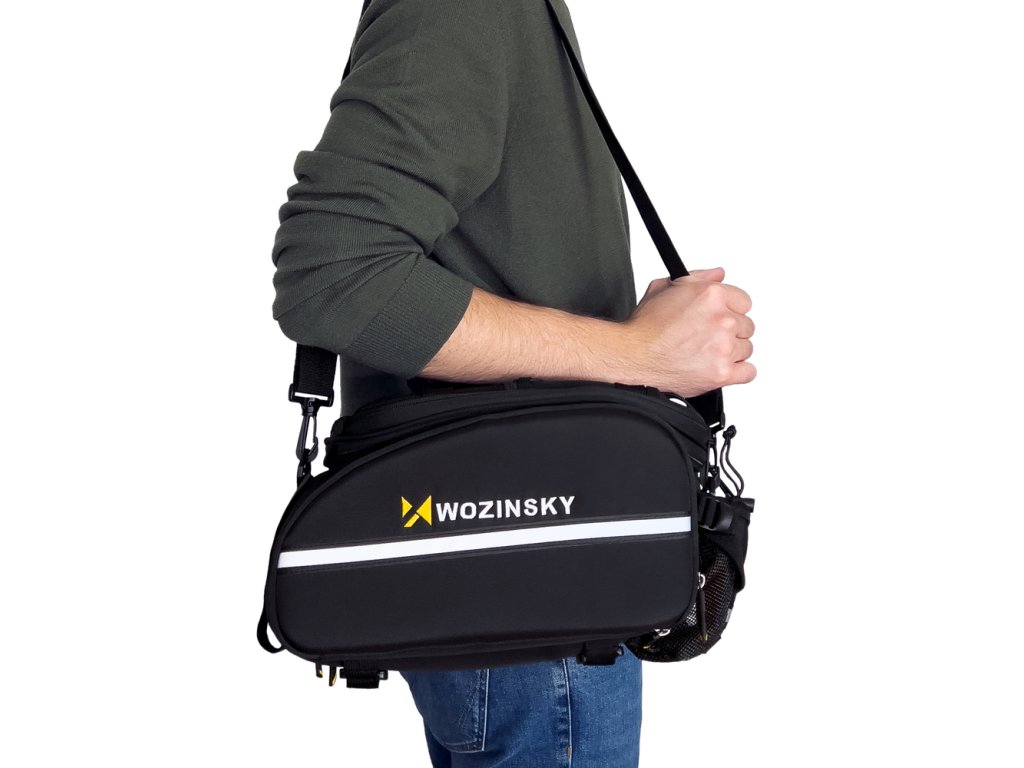 Wozinsky WBB19BK vám nabízí až tři možnosti přepravy: na cyklistickém nosiči, v ruce nebo na rameni. Taška je vybavena dvěma širokými suchými zipy, dlouhým ramenním popruhem a pohodlným madlem.