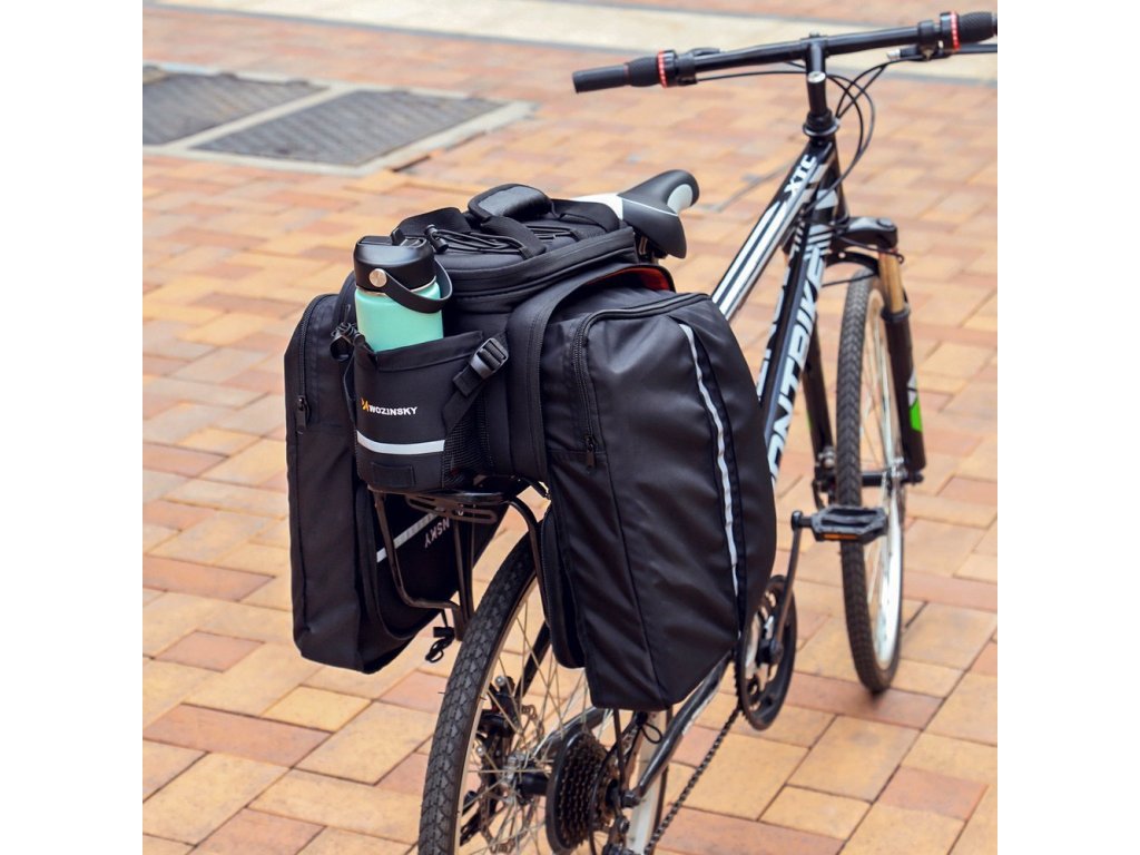 Taška Wozinsky WBB19BK má kapacitu až 35 litrů. Vejde se do ní vše, co potřebujete na kratší i delší výlety: od oblečení a potravin, přes servisní sadu, až po fotografické vybavení. Na denní použití může být v základní verzi, a pro větší výlety může být rozložená. Do bočních kapes se vejdou dvě další boční brašny.