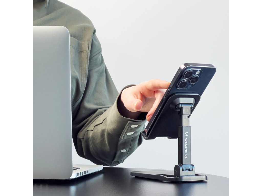 Máte rádi pořádek na pracovním stole doma nebo v práci? Stojánek na telefon nebo tablet Wozinsky WFDPS-B1 vám pomůže uspořádat pracovní prostor. Rozloží se jedním pohybem a po složení zabírá velmi málo místa – můžete ho schovat do zásuvky nebo organizéru na dokumenty. Díky kompaktním rozměrům a klasickým barvám (bílá nebo černá) bude pasovat do mnoha interiérů, včetně těch moderních. Vypadá velmi elegantně.